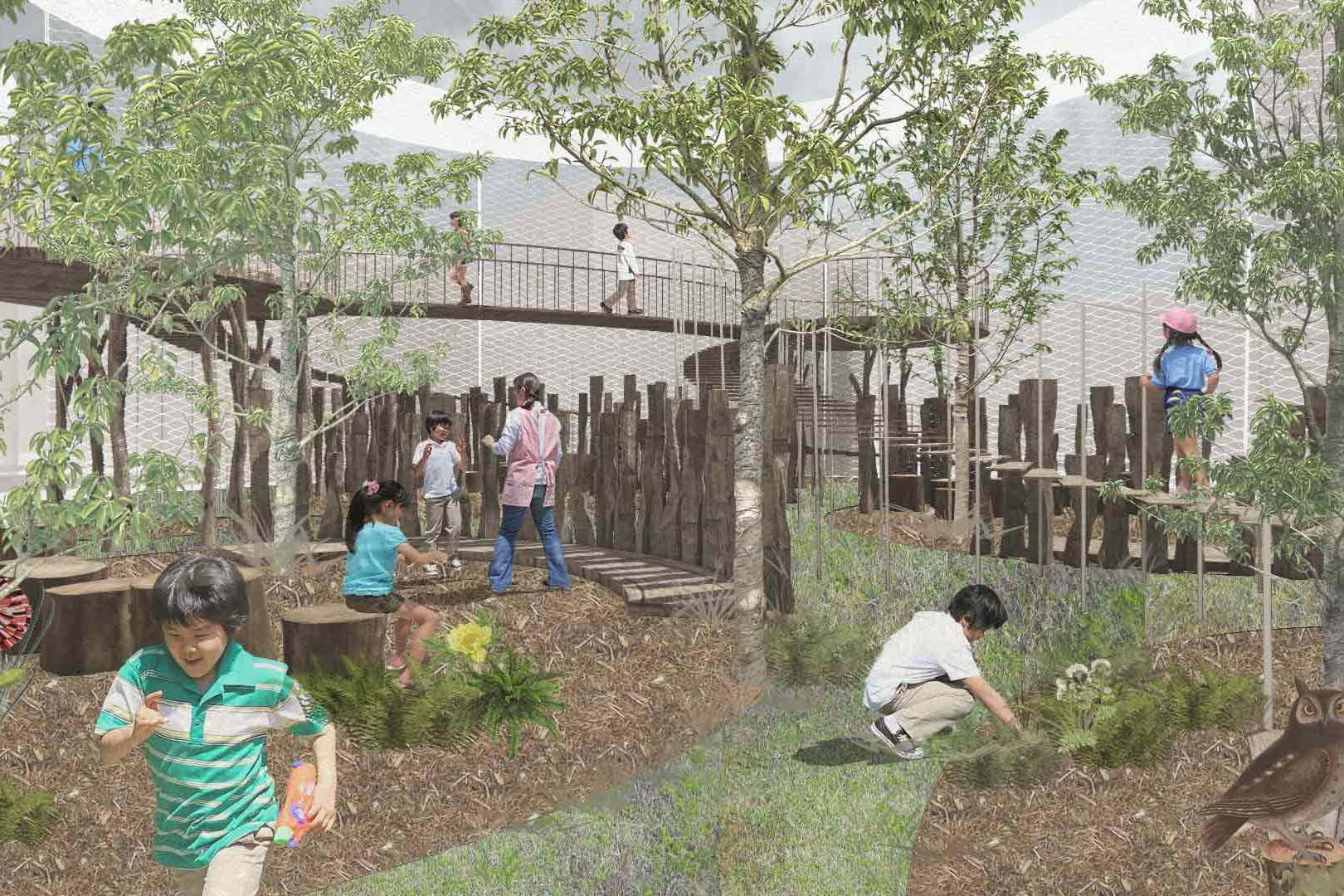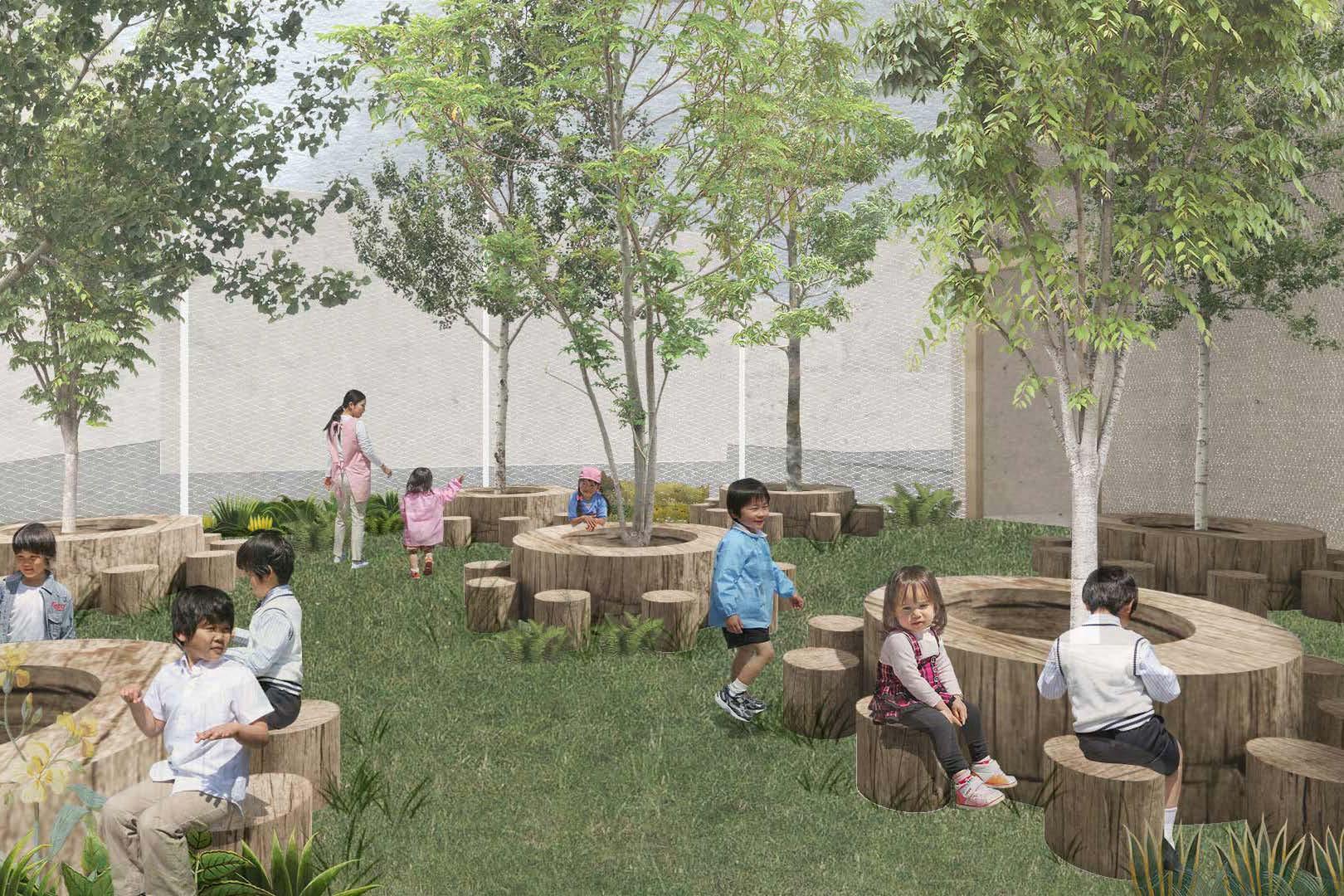 A new type of kindergarten that can be placed in the city, including both nature and children's daily needs.