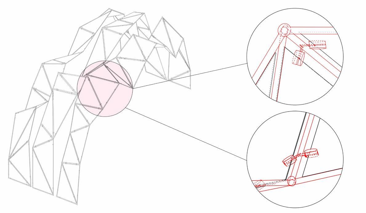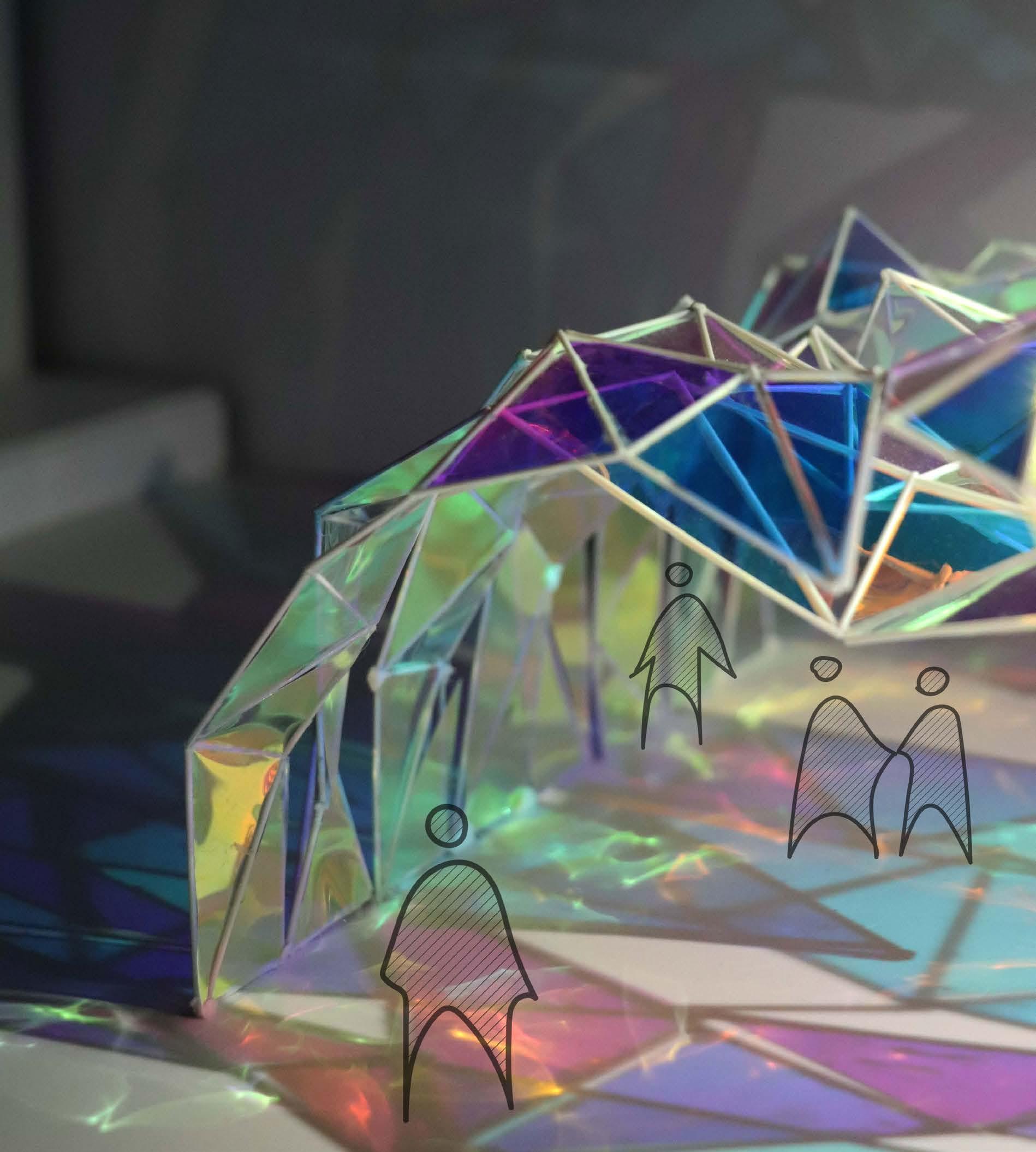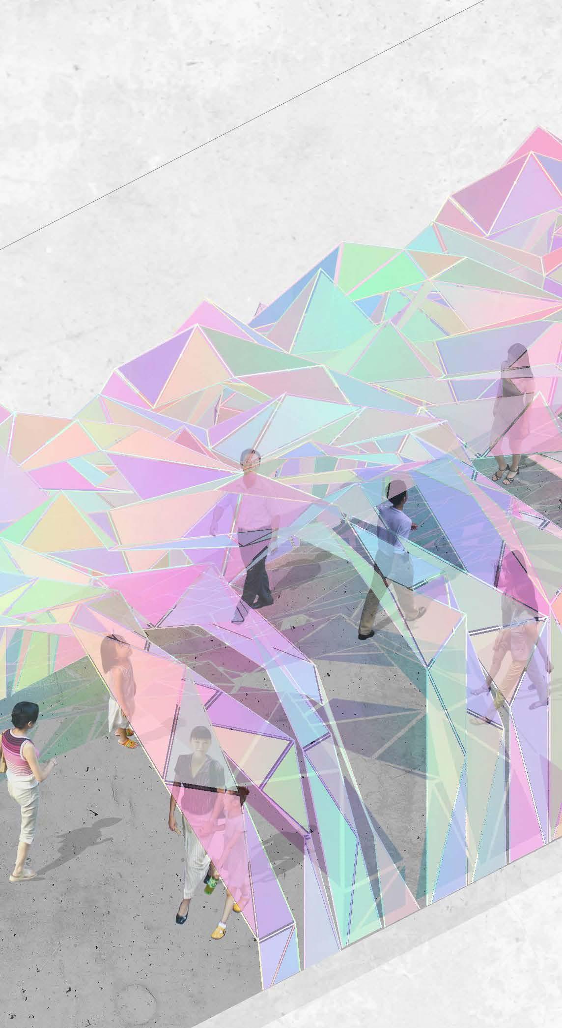Multiple polygons are combined to form roof or facade materials. The shape of hexagon is varied and has a certain sense of the future.At the same time, the permeability of the material can be adjusted by the intensity of light, but also can be adjusted manually, and in the artificial adjustment, each piece of material can be controlled separately, so you can freely adjust the size of the permeability area and the size of the shading area, in order to adapt to different indoor activity needs.