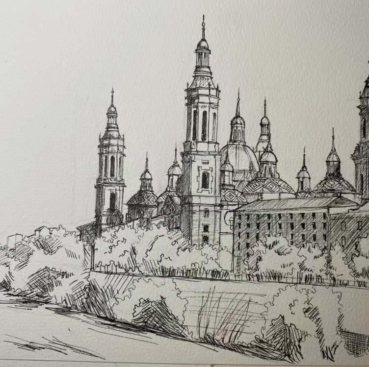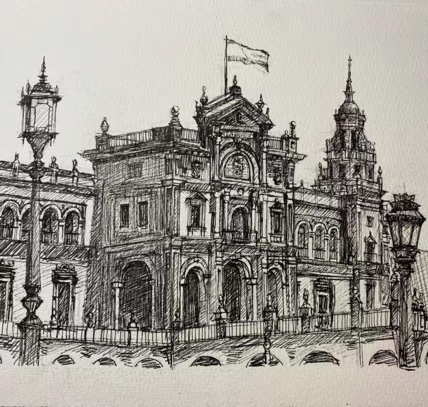 Survey Drawing(Technical Drawing) 24 Streetscape (Watercolor and Pen Drawing)