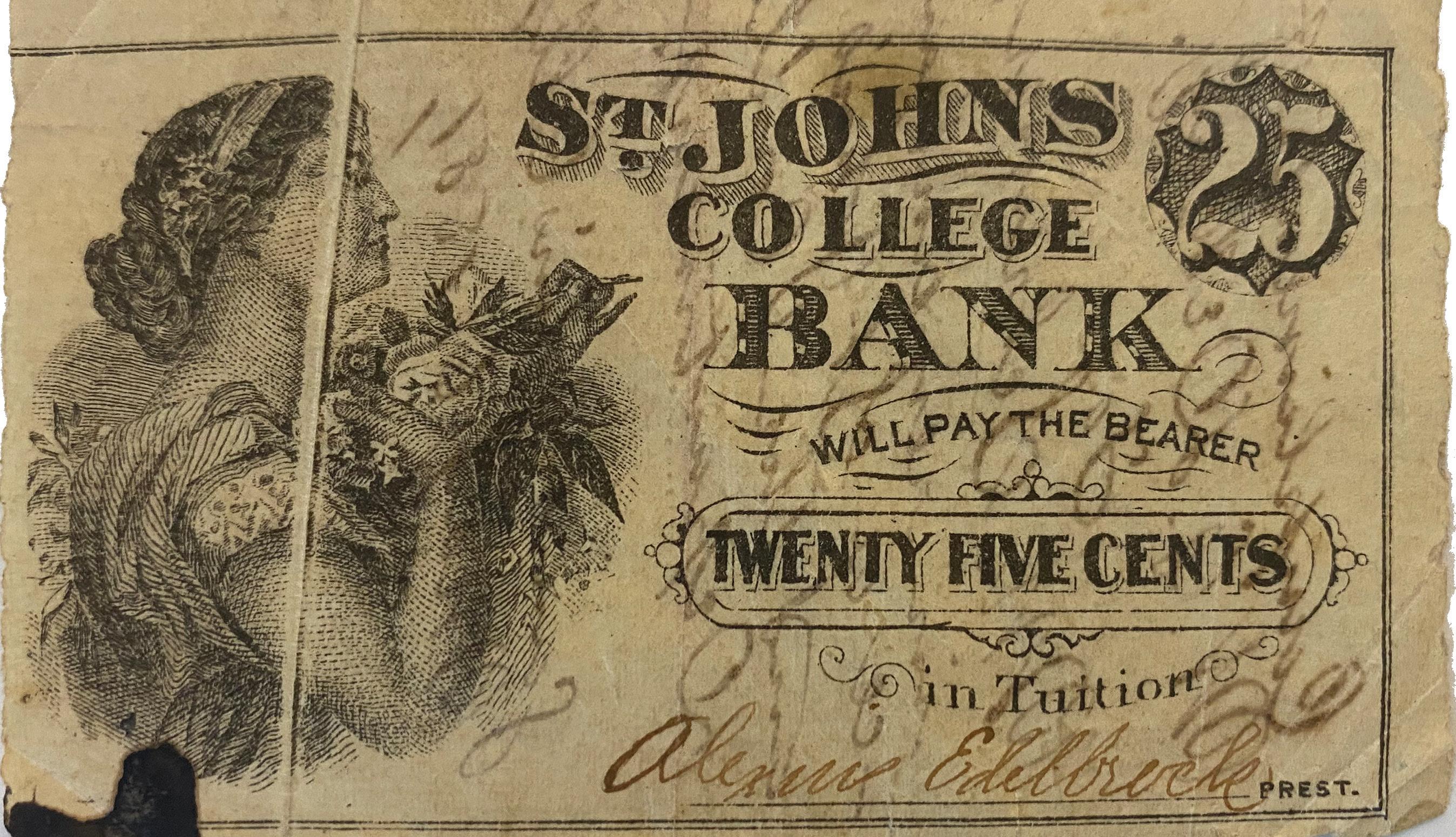 Within a year of their arrival in Minnesota to “establish a school for the service of the Lord” (Rule Prol.45), Saint John’s pioneer monks also established a school for educating local youth. Tuition often enough meant bartering, including donations of pigs and cows to the monastery’s farm! Brother Denys Janiga introduces us to another form of payment: Saint John’s own currency! In this issue, we also explore whether Saint Benedict was a Pelagian, meet a monk from the Buckeye State, conclude our series on monastic timekeeping, and more.