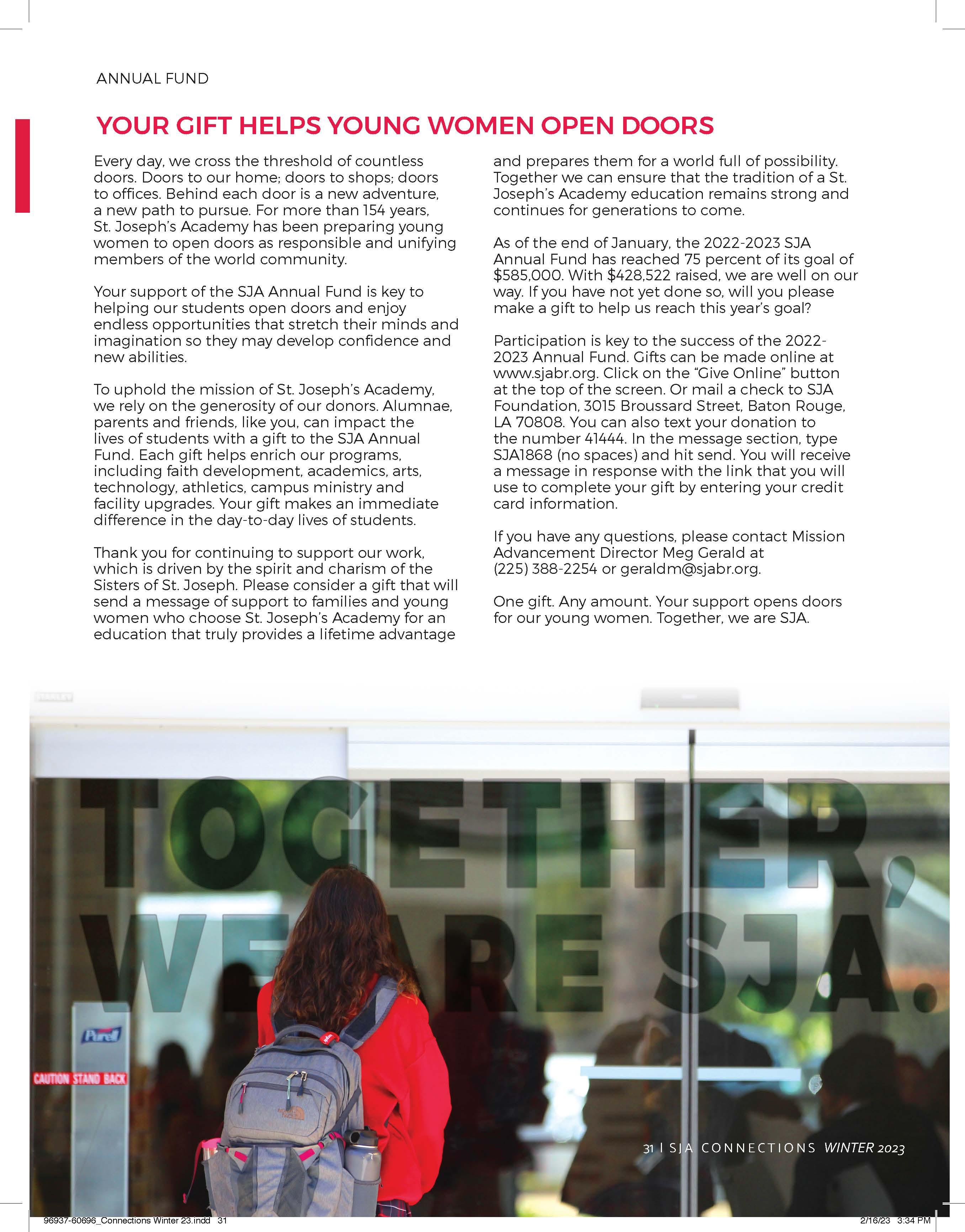 SJA Connections (Winter 2023) by St. Joseph's Academy - Issuu