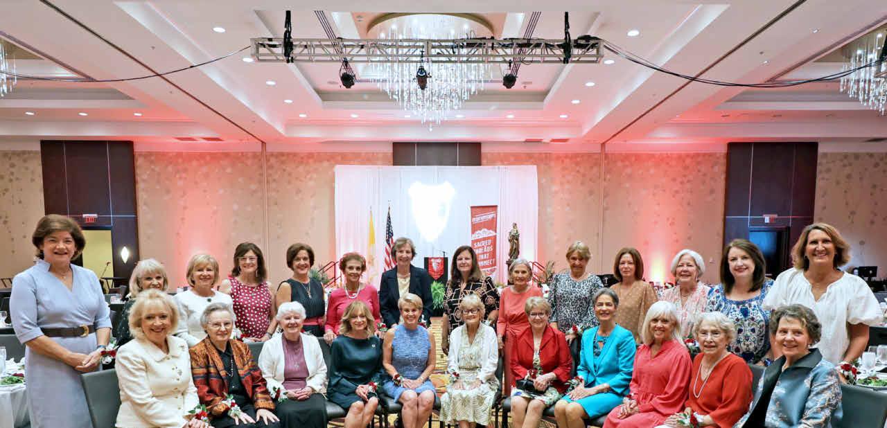 Previous recipients of the SJA Outstanding Alumnae award in attendance at the 1868 Dinner were (seated) Jan Rhorer Breen ’69, Lorna Bourg ’60, Sister Lucy Silvio ’59, Re Bologna DiVincenti ’71, 2025 honoree Paula Pennington de la Bretonne ’71, Elise Gauthier Fryou ’57, 2025 honoree Sandy Jumonville Brown ’71, Karen Williams Lewis ’71, Sharon Ourso Kleinpeter ’67, Patricia Lambert Brignac ’51, Ann Felice Fourrier ’69, (standing) Ellen Bogan Lee ’75, Elaine deFrances Ellis ’65, Rose Marie DeJohn Fife ’72, Roberta Carona Vicari ’74, Elizabeth Dauzat Seiter ’79, Tara Nolan Messenger ’70, Dorothy Bowers McCaughey ’64, Kristy Roubique ’76, Cherry Foret Riggs ’62, Melanie Rose ’71, Kim Gant Shackleton ’72, Grace Guttner Anderson ’69, Lisa Westmoreland Collier ’81 and Patricia Brignac Talbot ’84.