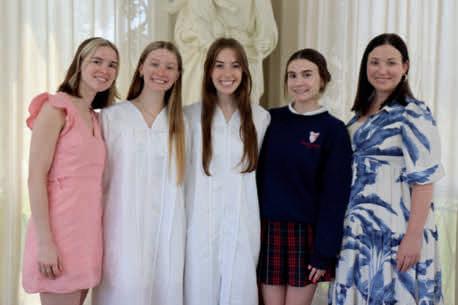Lauren D’Aquin Field ’84 (graduate’s aunt), Molly D’Aquin Kimble ’85 (graduate’s mother), Ann Malloy Kimble ’23, Maggie Kimble ’16 (graduate’s sister), Susan D’Aquin Dupont ’72 (graduate’s aunt), Lisa D’Aquin Sanders ’75 (graduate’s aunt) and Sally D’Aquin ’80 (graduate’s aunt).