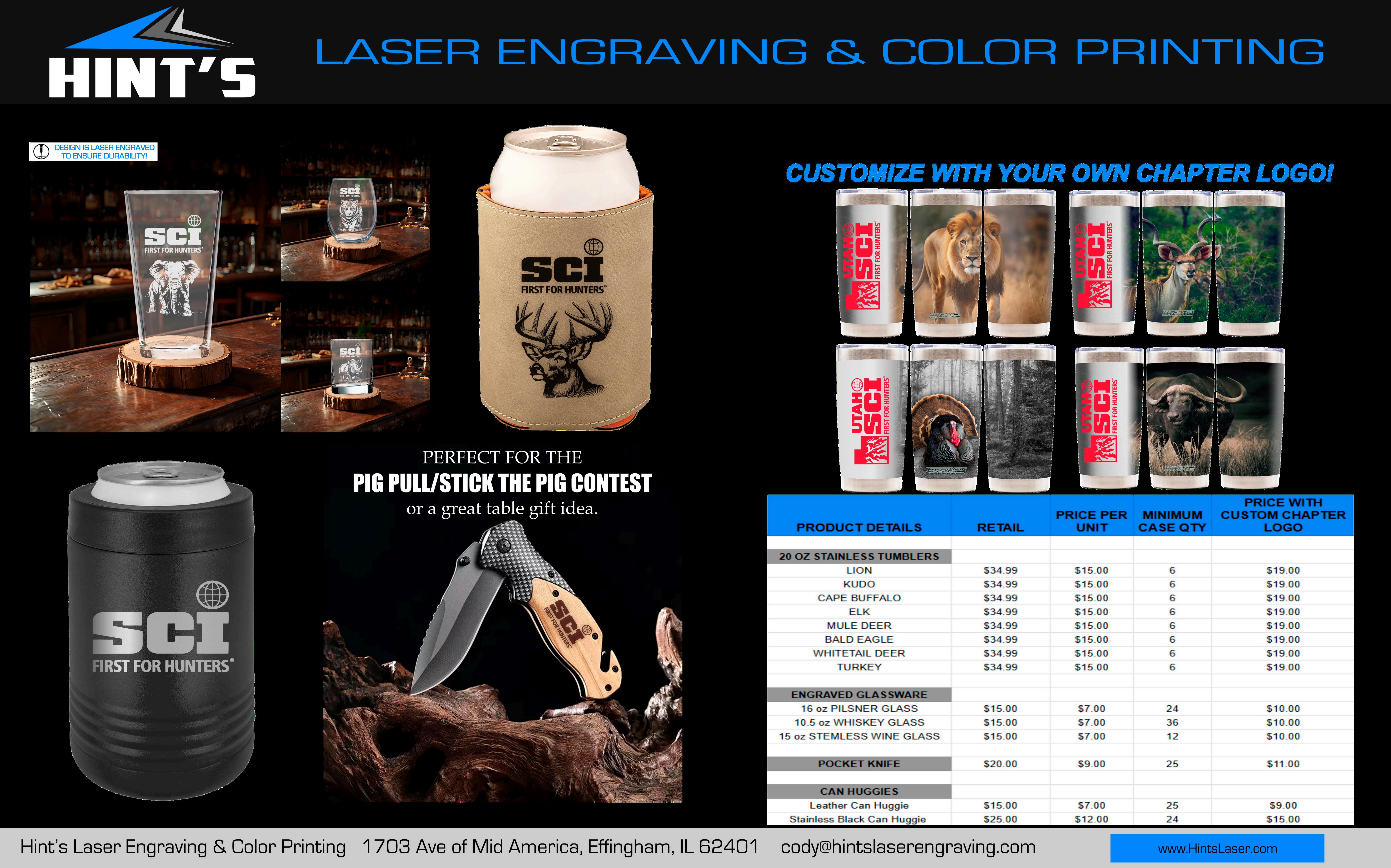 Proudly supporting conservation worldwide PLEASE CALL FOR EXCLUSIVE CHAPTER SUPPORT PROGRAM AUCTION ITEMS & FUNDRAISTING DONATIONS. We CAN ETCH PRODUCT to FURTHER PERSONALIZE.