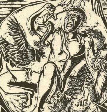 ● The dramatic position of Prometheuschained to a cliff-face rather than nailed to a cross - emphasises the powers at work behind this punishment. This is not a misplaced punishment enacted by humans (as in the story of Christ), but rather a fate decreed by the Ancient Greek gods.