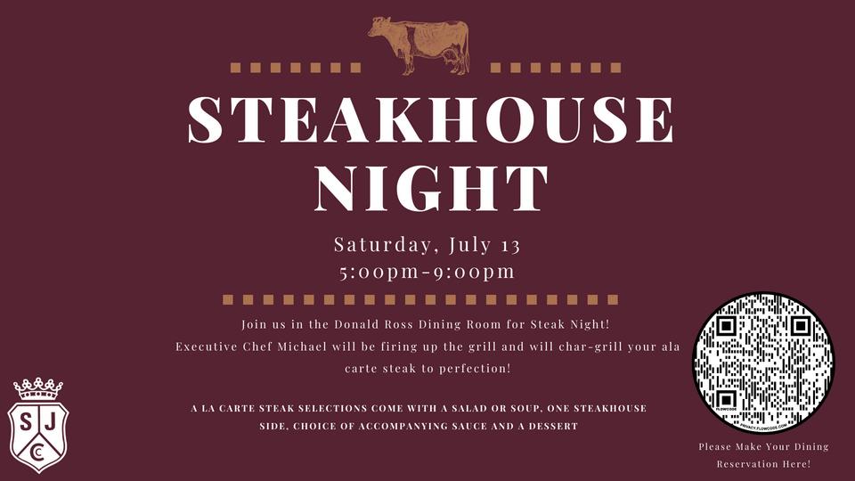 Exciting events are on the horizon, including another Steakhouse Night and a 4th of July Pool Party Don't miss out on our spectacular fireworks display on the 3rd of July – be sure to sign up early so our staff can make adequate arrangements