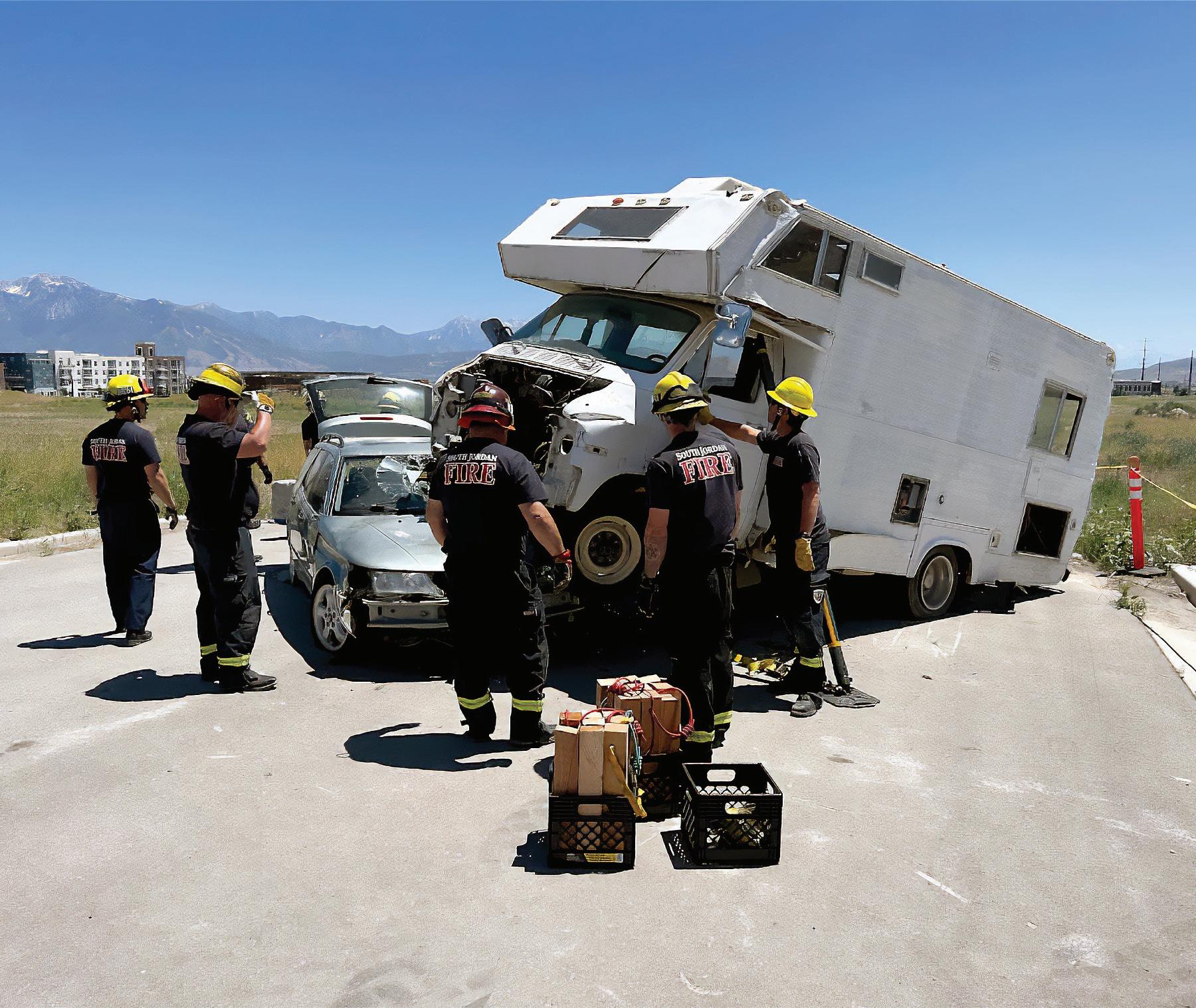 Personnel were taught a variety of different methods to secure and stabilize vehicles using struts and air bags, and they completed multiple rescue exercises at a real-time pace. These exercises included cars rolled onto their sides, cars inverted, and a final exercise in which a car was positioned underneath the RV. The crews were then asked to work together, form a plan, and stabilize the vehicles using equipment and techniques they had used during the class.