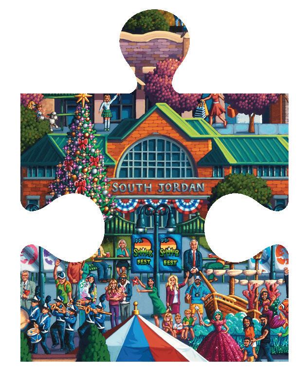 Unveiled as a mural at South Jordan’s Heritage Park on May 31, 2024, this puzzle is now available in three sizes: 100, 500, and 1,000 pieces, priced at $20 plus tax. It’s exclusively sold by the City of South Jordan and you may purchase this special edition in-person at City Hall, Station 64, the South Jordan Community Center, and Mulligans. You can also purchase them online with an additional shipping charge. Supplies are limited, so be sure to grab yours while they last!