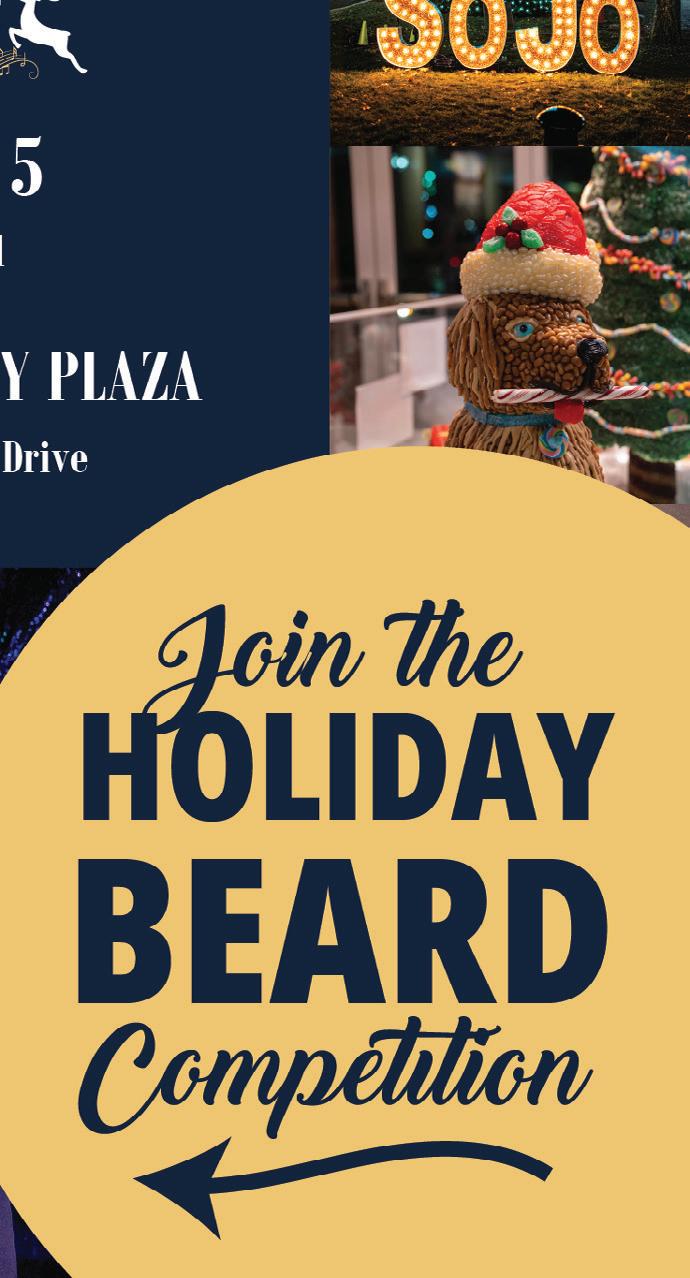 Live music | Winter market | Pictures with Santa | Story time with Mrs. Claus Gingerbread house competition | Candy windows | Library craft | Holiday beard competition | Petting zoo | Train ride