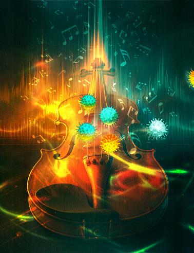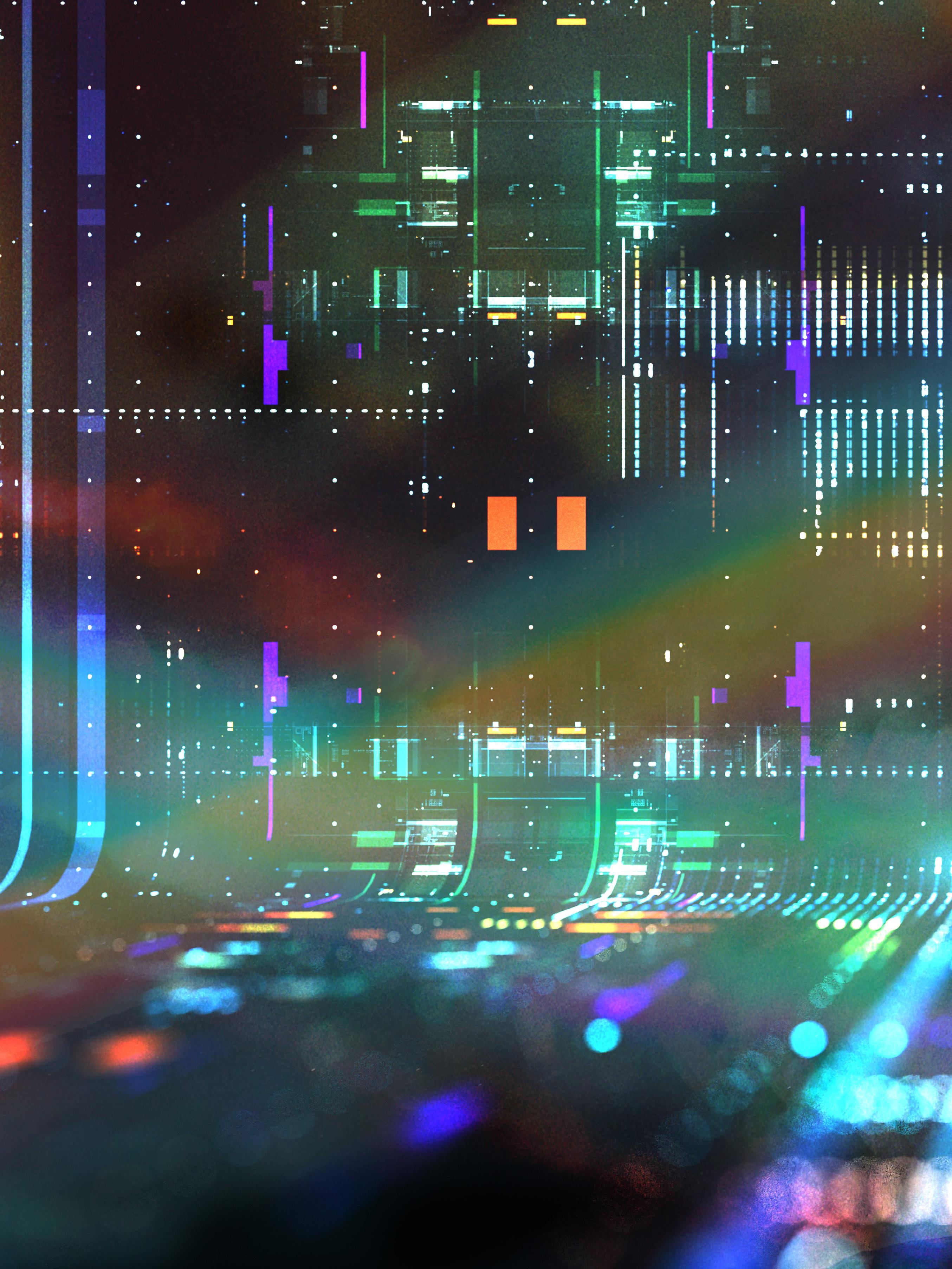 Light is a powerful force that fuels, illuminating discoveries and transforming our understanding of biological processes, molecular dynamics, human health, and disease. Modern microscopes and imaging techniques allow St. Jude researchers to manipulate light and energy to visualize aspects of science that can be leveraged to create novel treatments for catastrophic diseases. At the heart of fluorescence microscopy is the filter cube, which controls the path of light. The filter cube facilitates sample excitation and fluorescence signal detection, illuminating the target molecule(s). This artistic rendering of light at a specific wavelength passing through a filter cube to excite fluorophores embodies the concept of “lighting the way to knowledge.” The cube, sitting amidst a stream of computational data, represents how this technology integrates within a suite of scientific methods to generate impactful science. Artwork by Leena Xaypanya