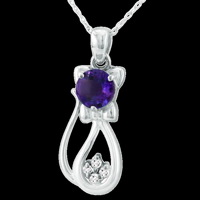 Cat Round Gemstone & Diamond Necklace
