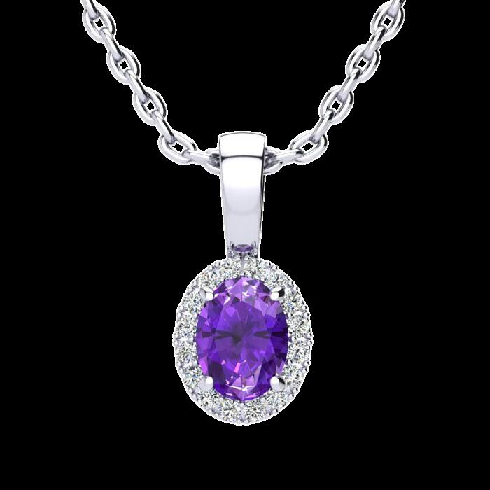 Oval Gemstone & Halo Diamond Necklace