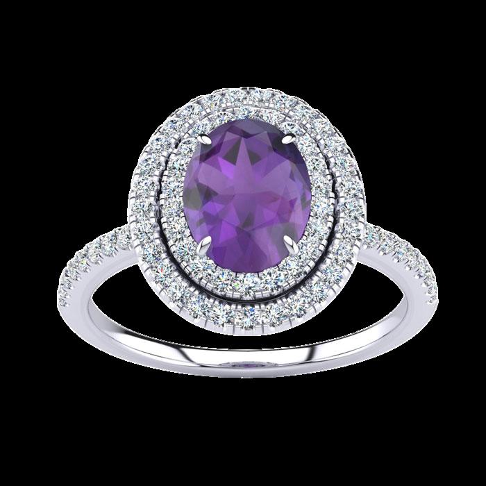 Oval Gemstone & Halo Diamond Ring