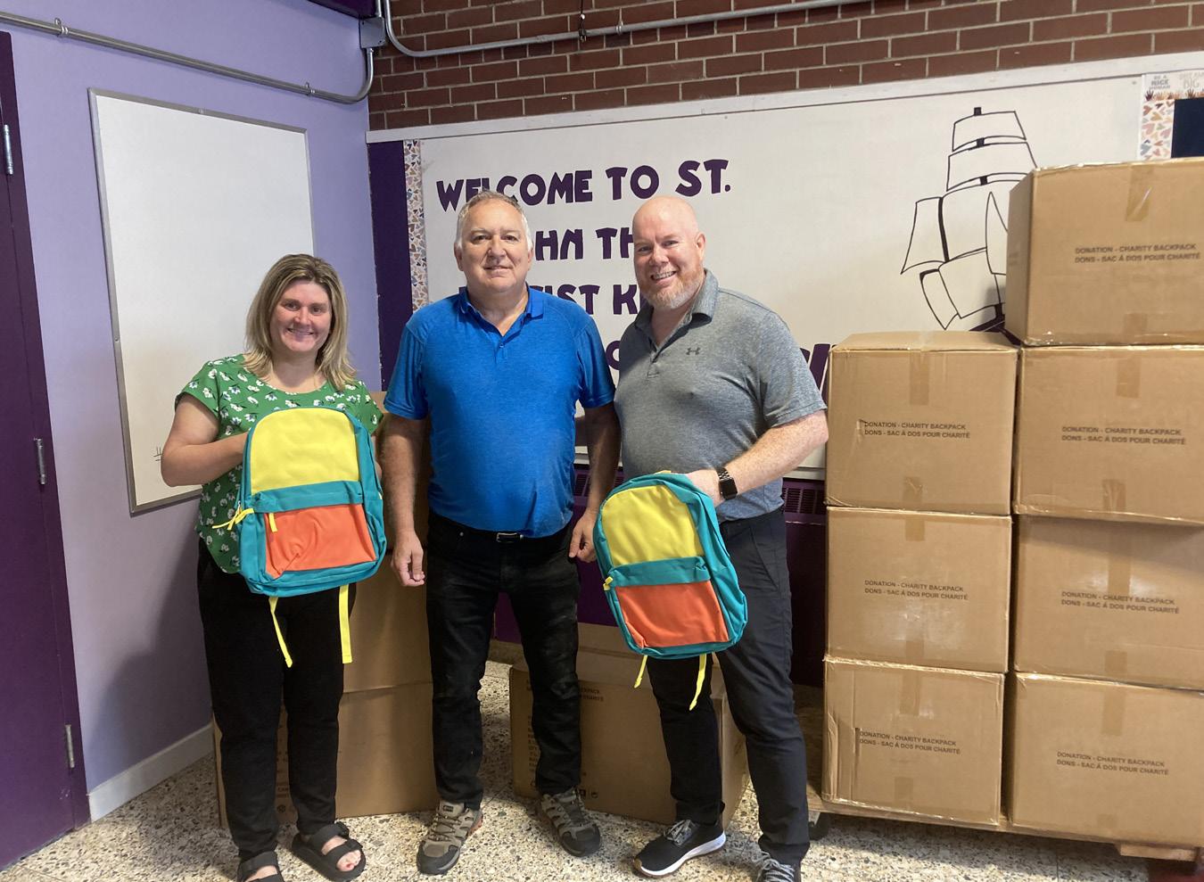 ONE Change would like to recognize one of our generous partners, United Commercial Travelers (UCT) Jack Kidd Council #755. UCT is a service group made up of community-minded people dedicated to improving the lives of their community members. UCT volunteers come year-round and help with various programs at both ONE Change and Crescent Valley Resource Centre. One this year was a donation of school supplies for families in the neighbourhood. This included bookbags, lunch boxes, pencils, crayons, pens, notebooks, and much more! With their generous donation, we were able to give out school supplies to 44 families. Thank you, UCT! Above: ONE Change Staff and UCT members with our school supplies (Photo: Jonathan Driscoll)