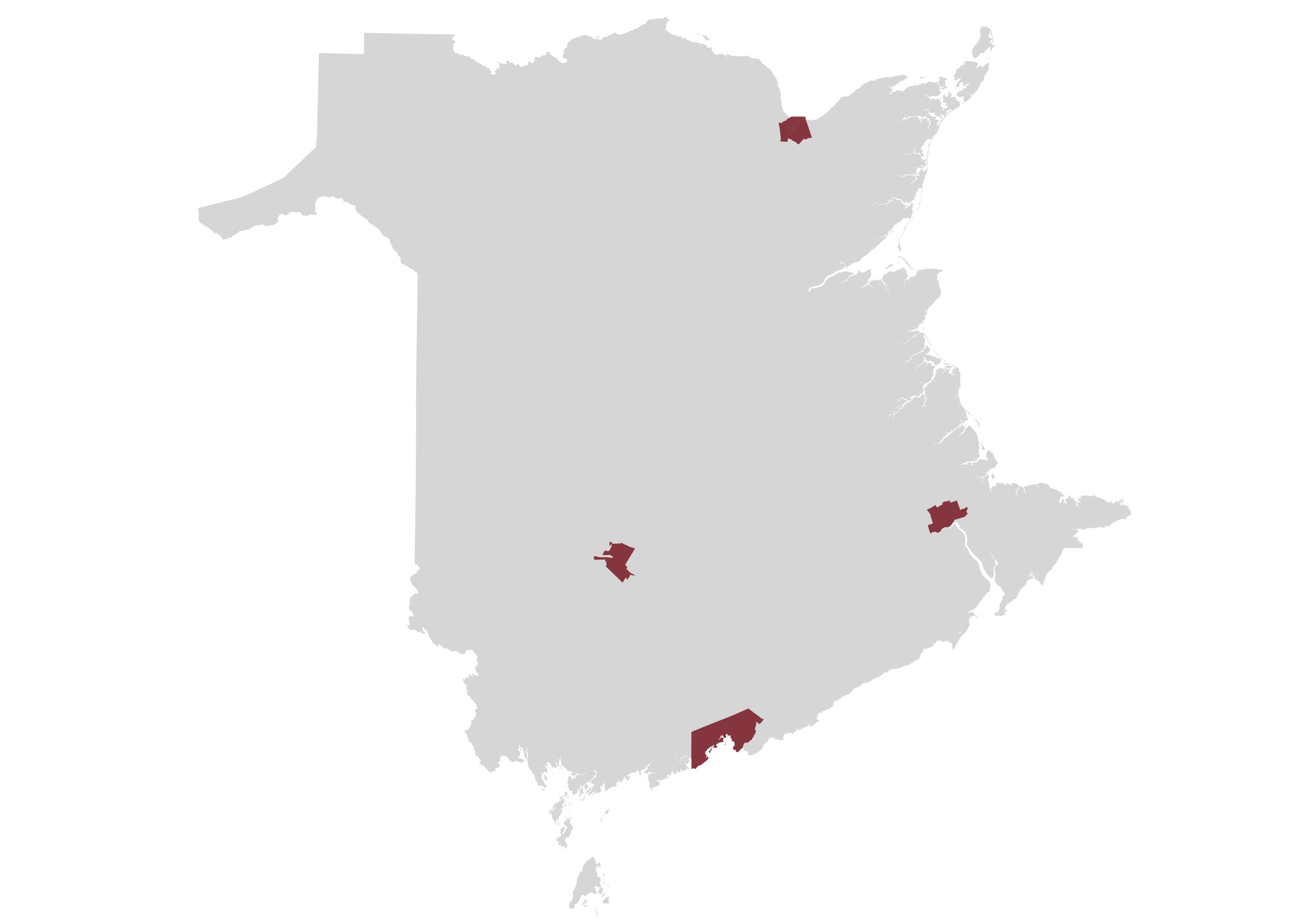 Le Nouveau-Brunswick ne possède pas de zone urbaine dominante. Par conséquent, les données disponibles peuvent être rares, surtout pour les régions situées en dehors de Moncton, Saint John et Fredericton On dispose de suffisamment de données pour calculer le revenu de subsistance dans ces principales villes, mais ce n'est pas le cas pour les régions moins peuplées de la province