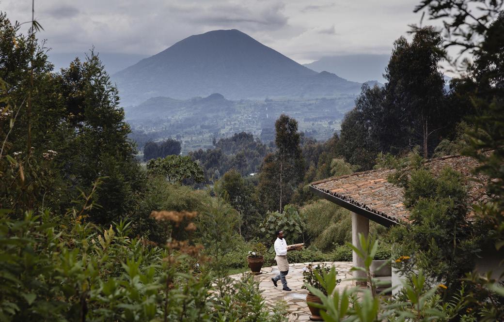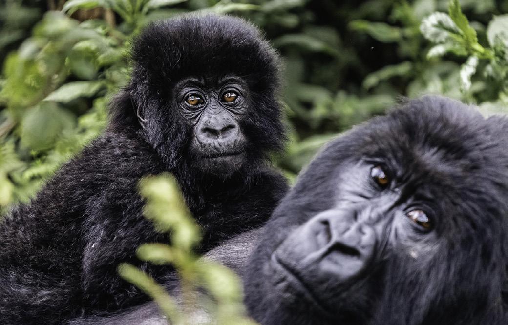 From there, journey to Volcanoes National Park for a threenight stay at Wilderness Sabyinyo. Just minutes from park headquarters, this intimate lodge serves as your gateway to one of the world’s most profound wildlife encounters: trekking through lush forest to observe the magnificent mountain gorillas in their natural habitat—an experience as moving as it is unforgettable. Experience rare face to face encounters with these intriguing creatures. Regulated treks through the reserve allow visitors to spend an hour at a time with these incredible primates in their natural habitat. Your stay also includes the rare opportunity for golden monkey trekking.