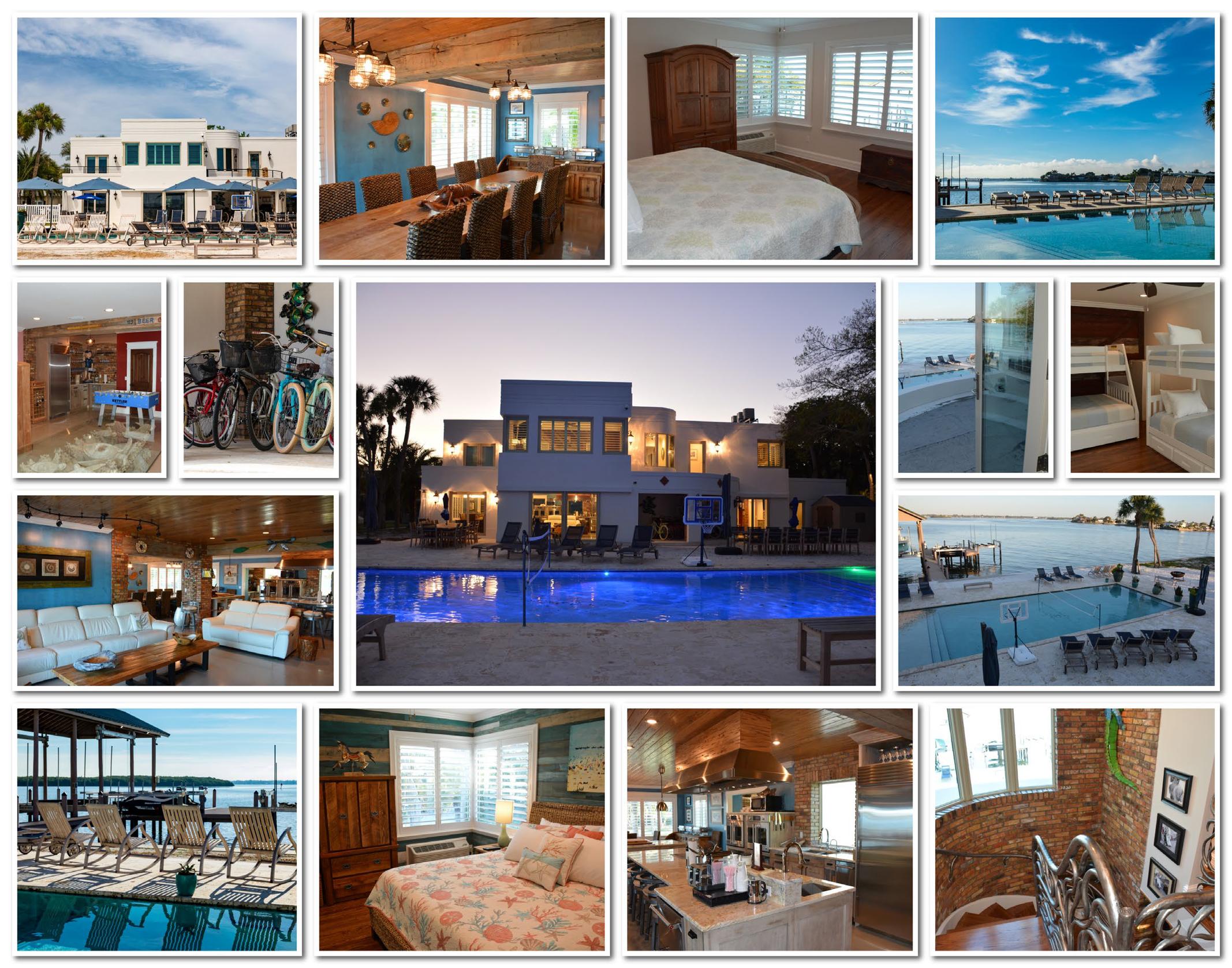 Beach: two beautifully appointed private homes located just a half mile apart traveling together, or groups who want both beachfront energy and peaceful bay bathrooms, 2 large pools and outdoor entertaining area. Together these homes beautiful Gulf sunsets, Intracoastal serenity and a resort-style living-all within walking