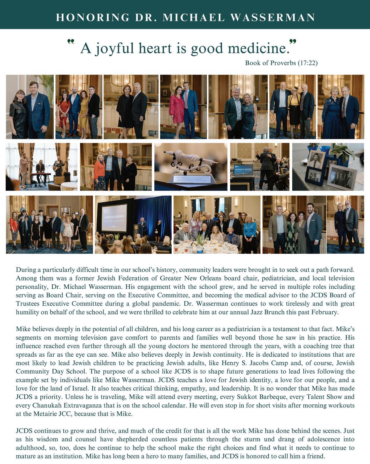 Jewish Community Day School in Metairie announced that Dashka Roth Lehmann and Larry Lehmann will be the honorees at this year’s JCDS Brunch, April 19 at the Higgins Hotel. Dashka served as president of the Day School during its transition to Sharon Pollin as head of school, at a time when the school was re-establishing its Jewish identity. Larry is past president of the Jewish Endowment Foundation and Tulane Hillel.