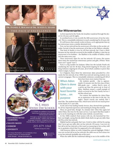 Doug Brook still has a few bar mitzvah thankyou cards to write – and will keep having bar mitzversaries until he finishes writing them all. To acquire both Rear Pew Mirror books, read other past columns, or listen to the Rear Pew Mirror podcast, visit http://rearpewmirror.com/ done kosher events at the synagogues and in people’s homes. They also have the fresh seafood market for those who want to take it home and prepare in their kosher kitchens.