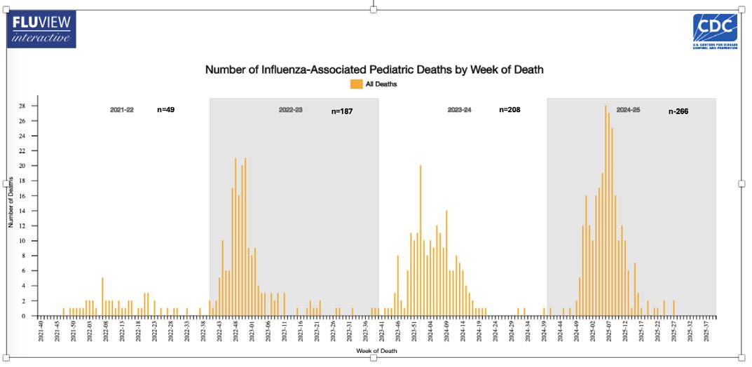 Of those deaths, 266 were pediatric deaths, the highest number reported in any non-pandemic flu season since pediatric flu deaths became nationally notifiable in 2004. More than 40% of the children who died had no known high risk underlying medical conditions. Nine out of 10 pediatric deaths attributed to influenza occurred in children eligible for flu vaccination who were not fully vaccinated.
