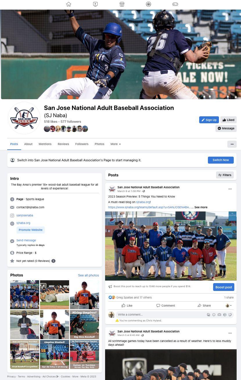 San Jose National Adult Baseball Association is an 18+ wood-bat, non-profit baseball league providing the highest quality baseball for adults of any experience and skill levels in Northern California. Our mission is to promote physical fitness, teamwork, and community engagement through the game of baseball, America's pastime.