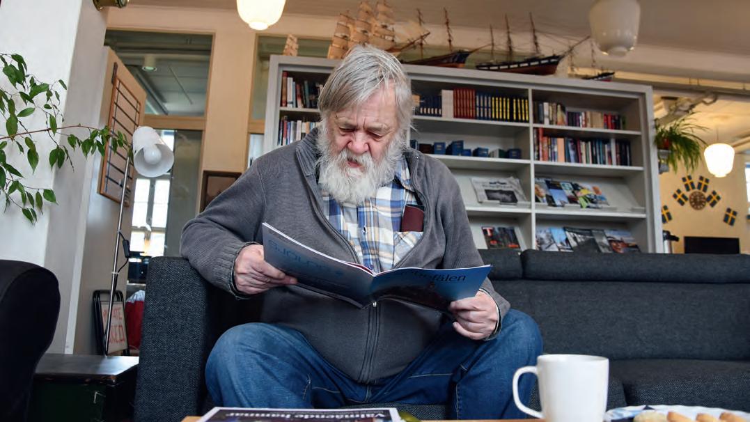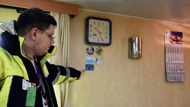 Framsidesbild Fartygsassistent Joakim Mäklin har fikabröd med sig på fartygsbesöket. Foto: Annika Hjerpe