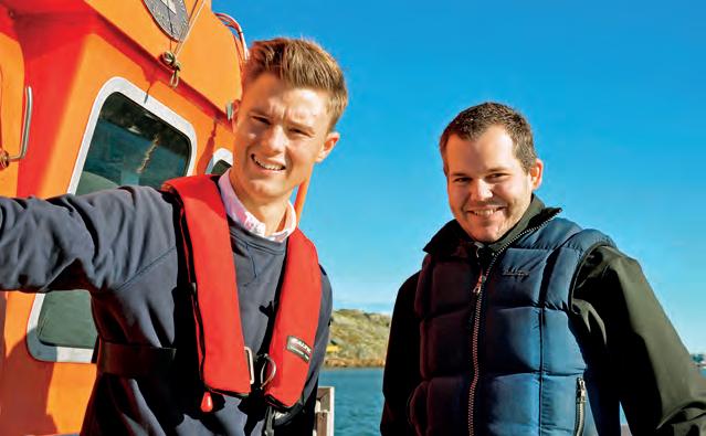 Framsidesbild Folk vinkar till Joakim Bomanson när de ser lotsbåten som är stripad med Green Pilot. Foto: Agneta Slonawski