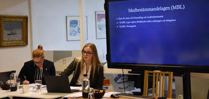 kansliet för att lära sig mer om arbetsrätt, kollektivavtal, arbetsmiljö och pension. En av kursens höjdpunkter brukar vara förhandlingsspelet, så även den här gången. Befälhavare Sjöbjörn Bäckström i det fiktiva rederiet Sealion hade blivit akterseg