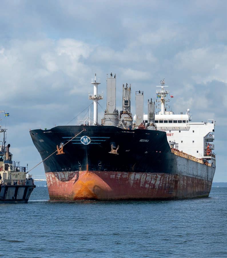 För att säkerställa bärgning av Meshka (bilden) och Ali Aykin, kallades resurser från Sjöfartsverket in för att sjömäta botten.