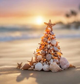 Think surfing Santa, palm trees, beachy reindeer, and elf lifeguards.