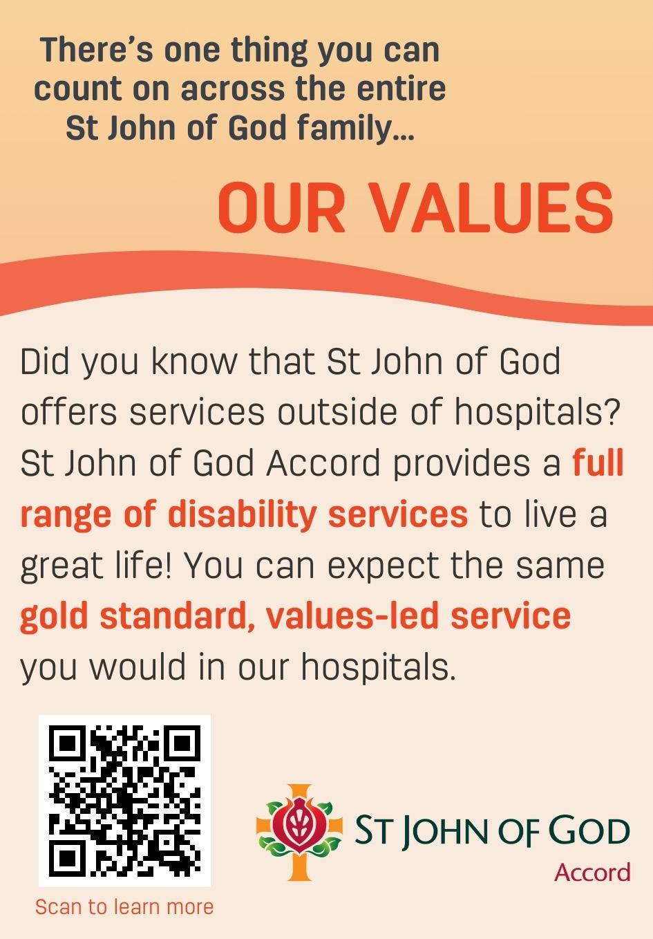 work together to achieve in all aspects of volunteering with St John of God as we uphold the values of respect, hospitality, justice, compassion and excellence in all that we do to provide the very best in patient experience and outcome.