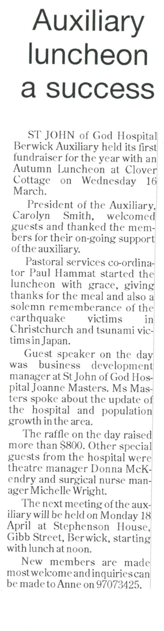 Many staff were children of employees, myself included. My son Scott became the third generation of our family to work at Berwick. The hospital evolved into Berwick Hospital Incorporated, and the hospital logo, ‘I Will Survive’, was seriously challenged. We had some very scary years, and we certainly embraced hope as we struggled financially. Finally, our prayers were answered when St John of God purchased the hospital in 2010.