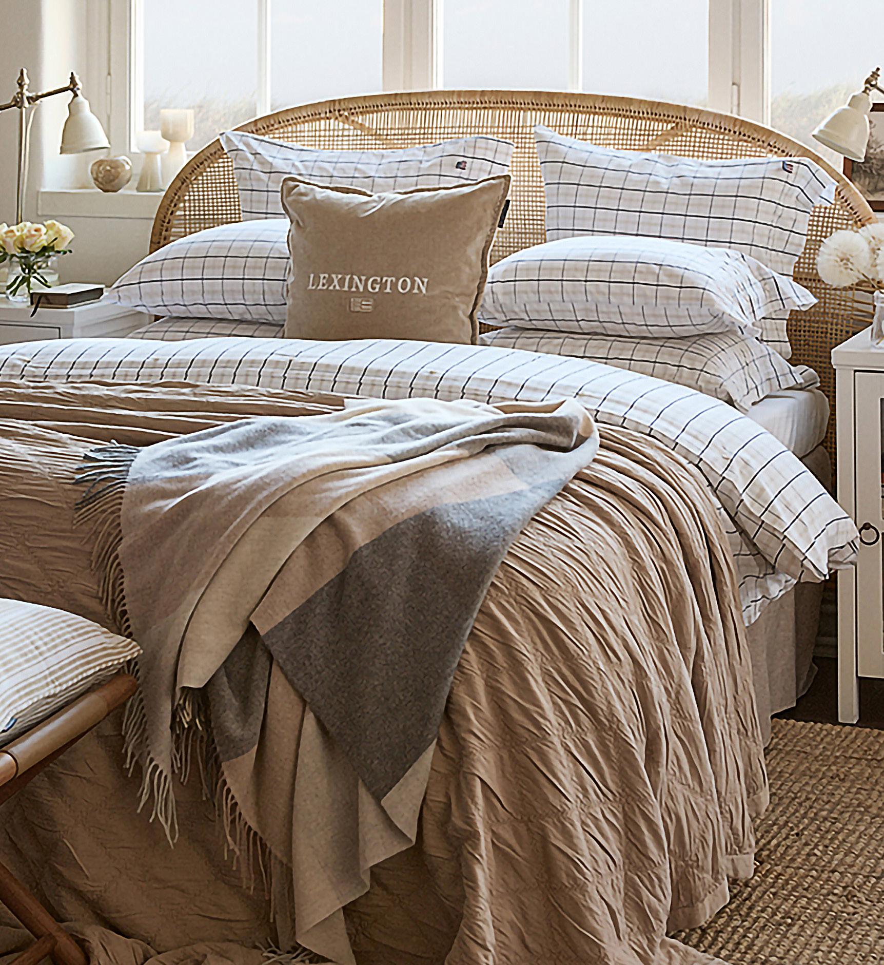 Dette pleddet er tidløst og koselig, og har et mykt rutemønster med frynser på kortsidene. En vevd Lexingtonlogoetikett fullfører det klassiske designet