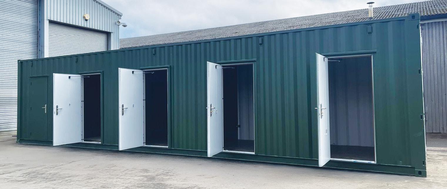 A multi store container unit is a converted shipping container that has been divided into smaller, individual storage spaces, each with its own easy-access personnel door. Available in 20ft and 40ft options (or built to your specifications), these units can be divided into various sizes to match your and your customers’ needs.