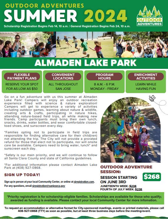 ALMADEN LAKE PARK SUMMER 2024 Register at www.sjregistration.com 2
