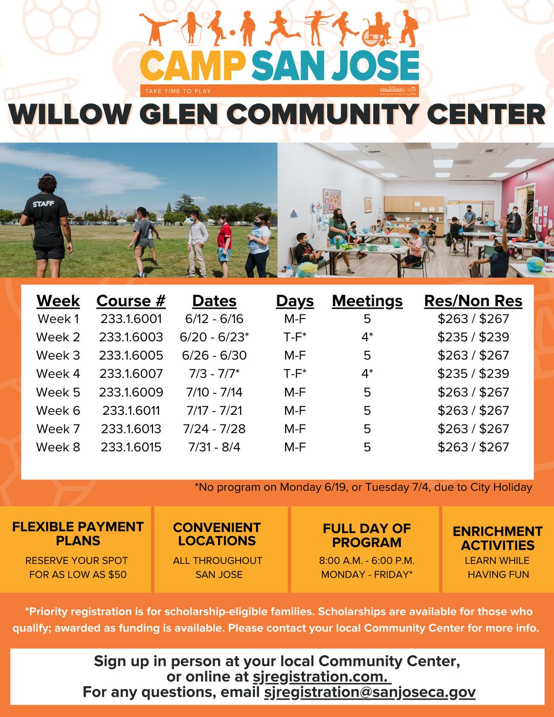 COMMUNITY ACTIVITY GUIDE SUMMER 2023 sanjoseca.gov/prns sjregistration.com PROGRAMS FOR ALL AGES SCHOLARSHIP DETAILS INSIDE WILLOW GLEN C O M M U N I T Y C E N T E R 2175 Lincoln Avenue 408-448-6400