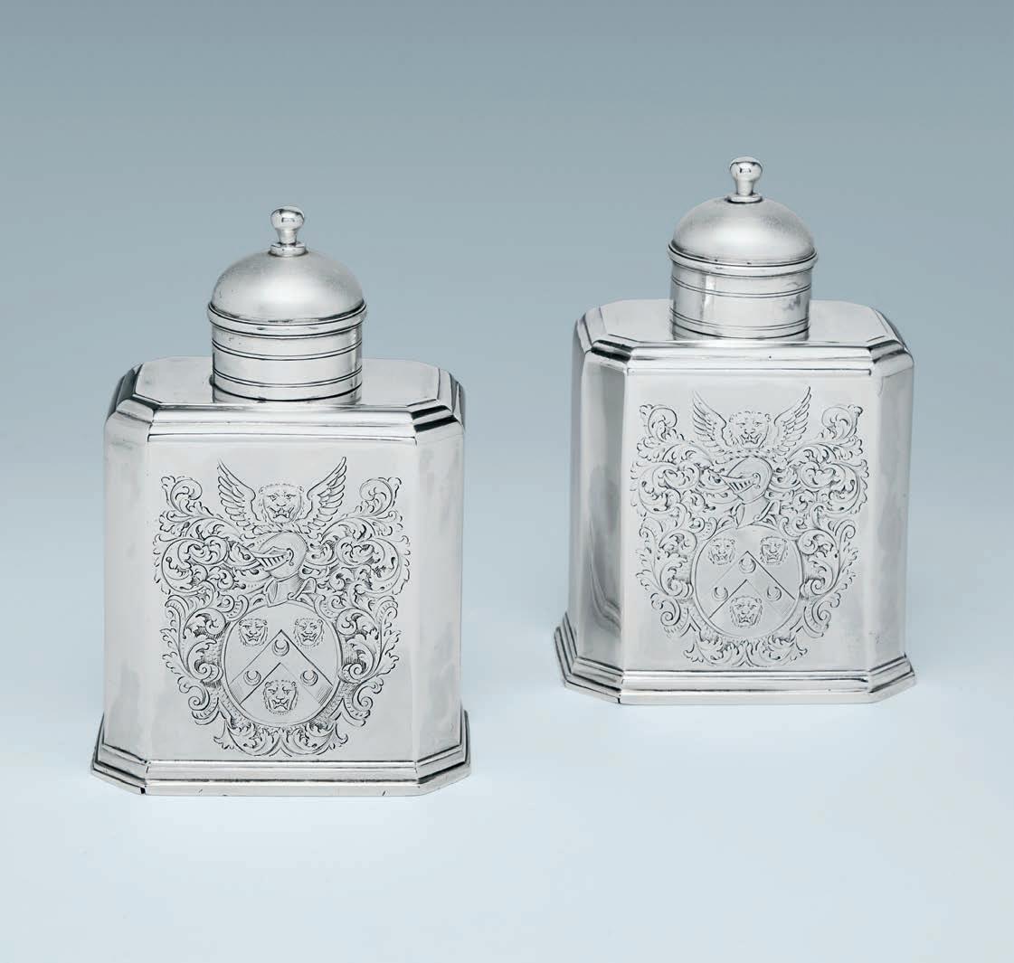 Like the candlesticks above, these are a product of the intriguing goldsmith Peter Desvignes, nearly all of whose work is in this very fine French taste.