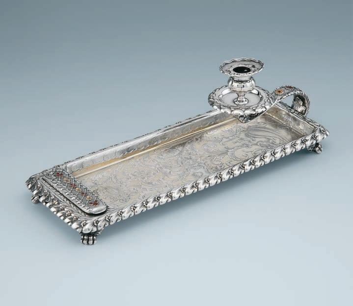 An American Parcel-Gilt & Enamel Pen Tray with Chamberstick