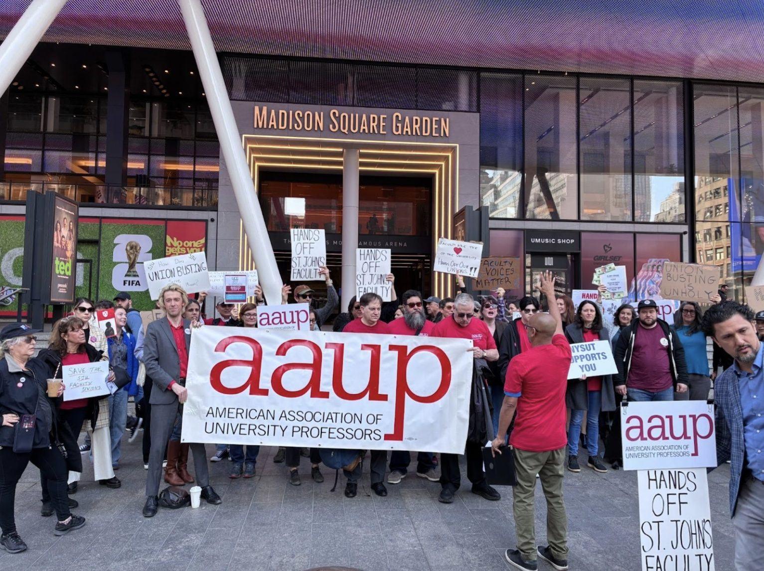 After Rev. Brian J. Shanley’s announcement to unrecognize the St. John’s University chapter of the American Association of University Professors (AAUP), union members took it upon themselves to organize a rally and press conference in retaliation.