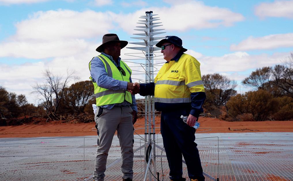 March also saw the official opening of the SKA-Low construction village, Nyingari Ngurra, a 176-bed purposebuilt camp that provides accommodation to staff and contractors as they continue to undertake crucial infrastructure work across the SKA-Low site. The opening of the village was celebrated with a dinner, as well as a performance from a local Western Australian Aboriginal band – Red Ochre – and the gifting of the traditional Wajarri name that translates to “home of the zebra finch”.