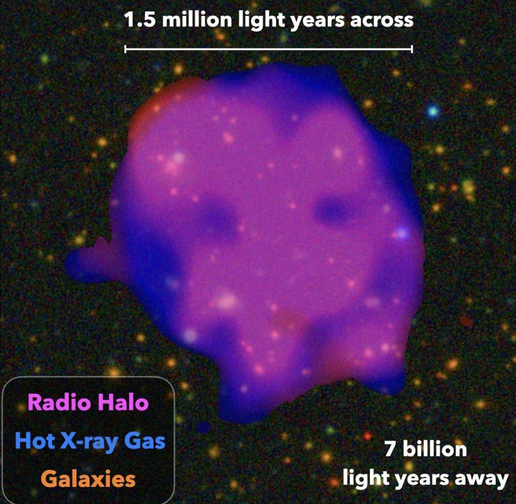 16 MeerKAT finds unusual radio glow in distant swarm of galaxies