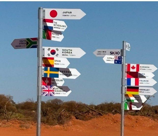 Bottom: Wayfaring signs in the SKA-Low core, indicating the distance to SKAO partner countries.