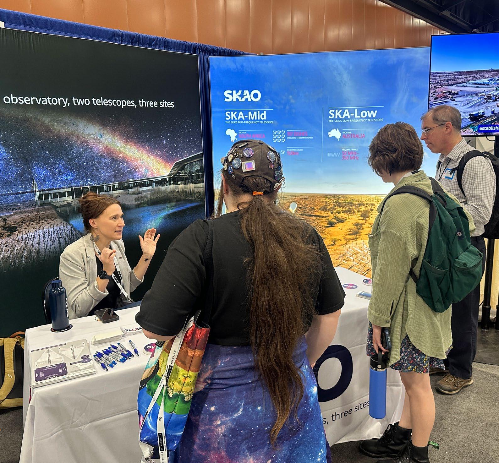 It has been more than 10 years since the SKAO last had a presence at the AAS Meeting and returning this year was particularly timely as it came only a few weeks after the SKA-Mid team achieved the milestone of “first fringes” (see page 12), news that was announced publicly to astronomers and media at the event.