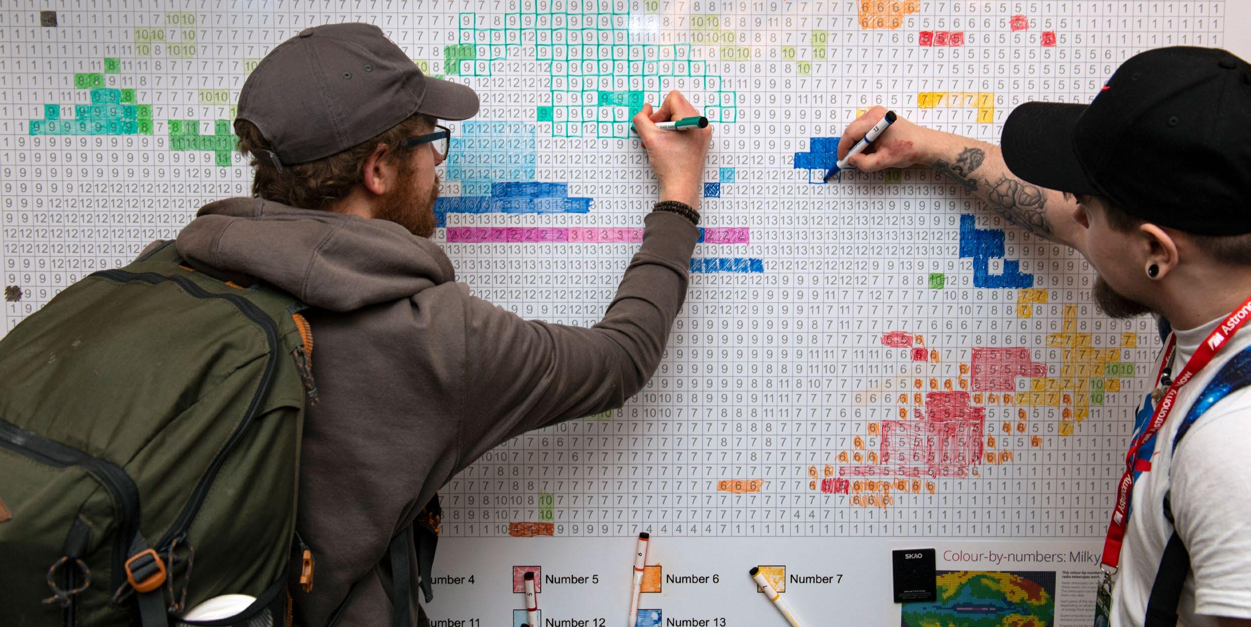 The SKAO stand featured a huge collaborative colour-bynumber of the Milky Way in radio light, with smaller takehome versions available too. This is a fun and engaging way to explain how radio telescopes observe the sky, which proved extremely popular with participants young