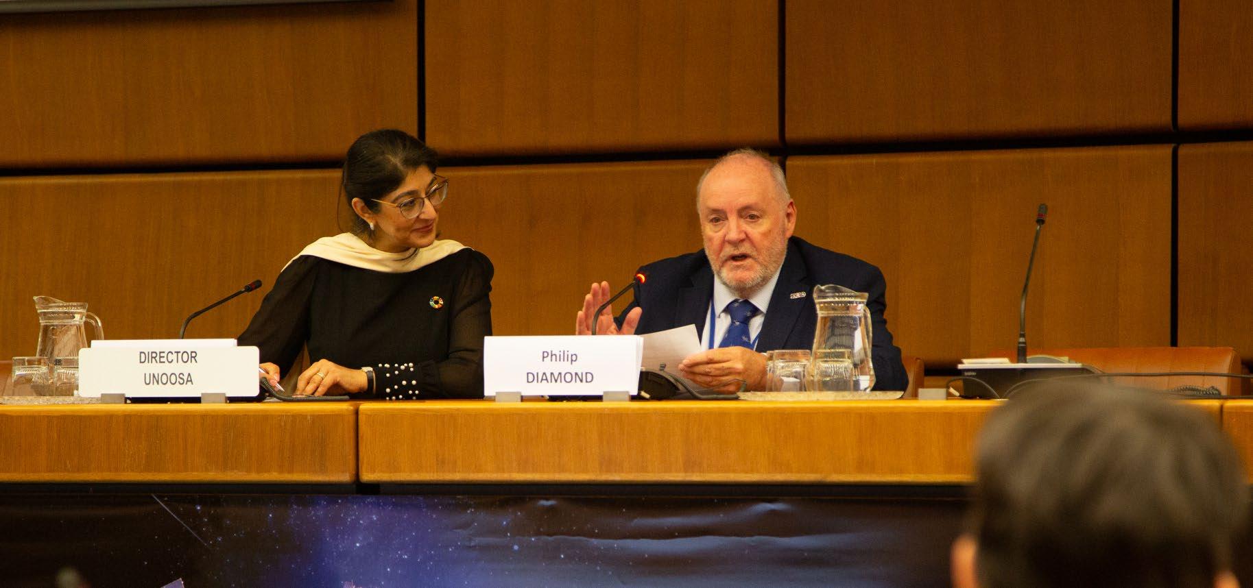 Prof. Philip Diamond with UNOOSA Director Aarti Holla-Maini at the UN/SKAO Workshop on Dark and Quiet Skies for Science and Society in December 2025.
