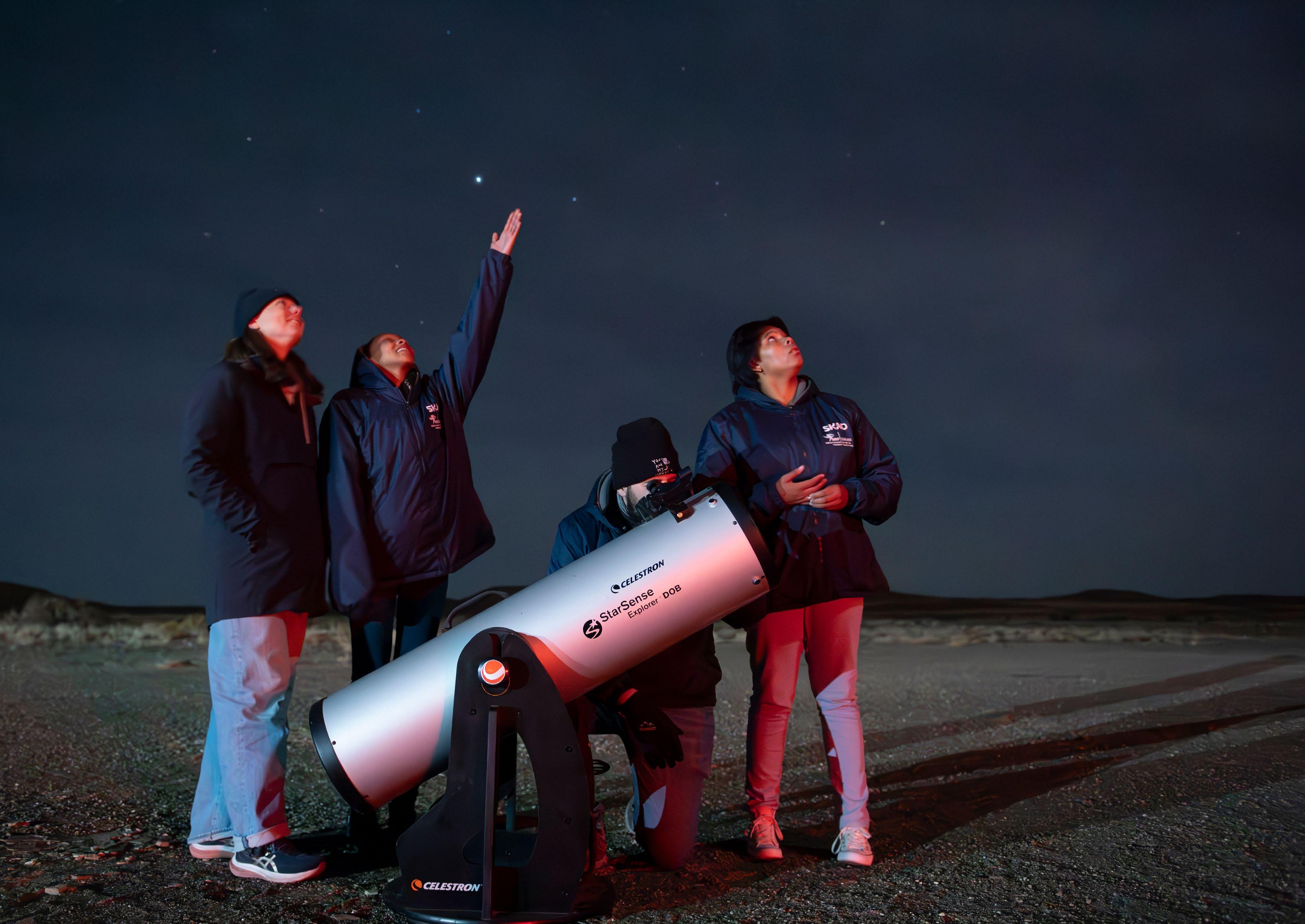 Six astro-tourism guides trained by SARAO now give immersive tours of the night sky in the towns near the SKA-Mid telescope. Credit: SKAO/Max Alexander