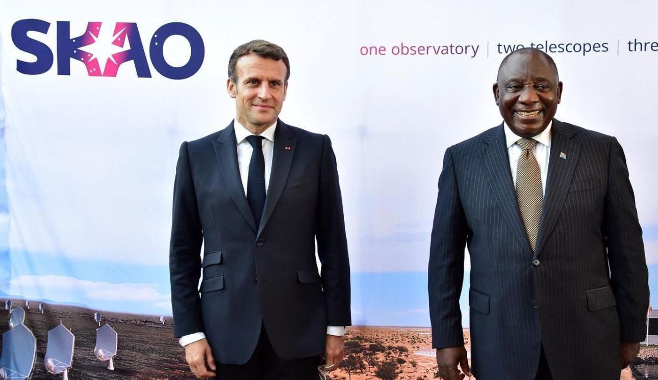 French President Emmanuel Macron and South African President Cyril Ramaphosa during President Macron’s state visit to South Africa on 28 May 2021, where he announced that France would join the SKAO.