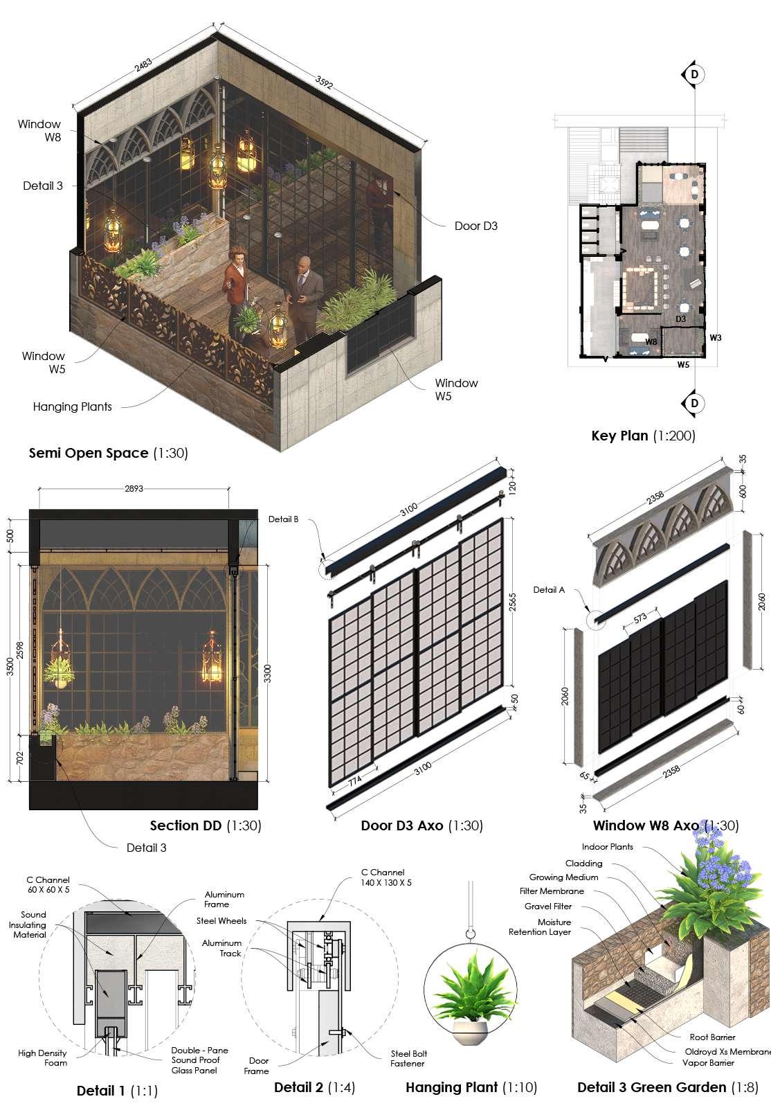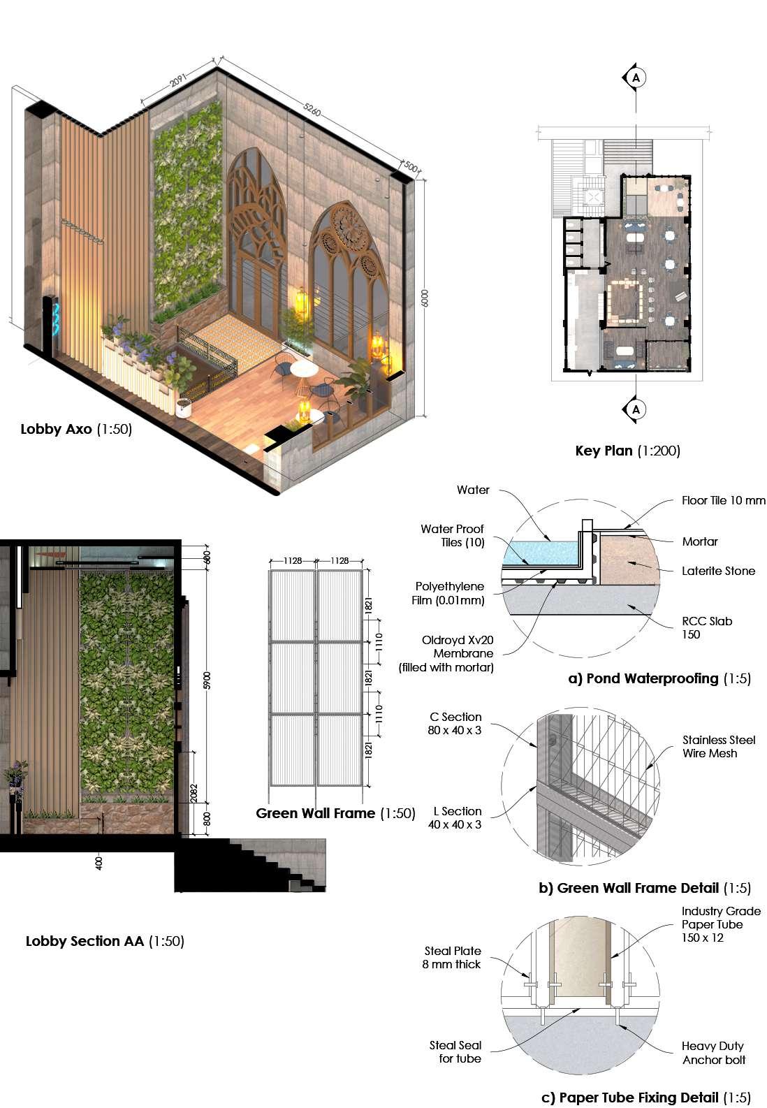 These are some of the technical drawings that were drafted by me, note that the drawings have been resized from A2 size to A4 without taking into the scales mentioned in the drawings. The software used to draft all the drawings was AutoCad by AutoDest and for some of the sheets I have done some post-production work on Photoshop.