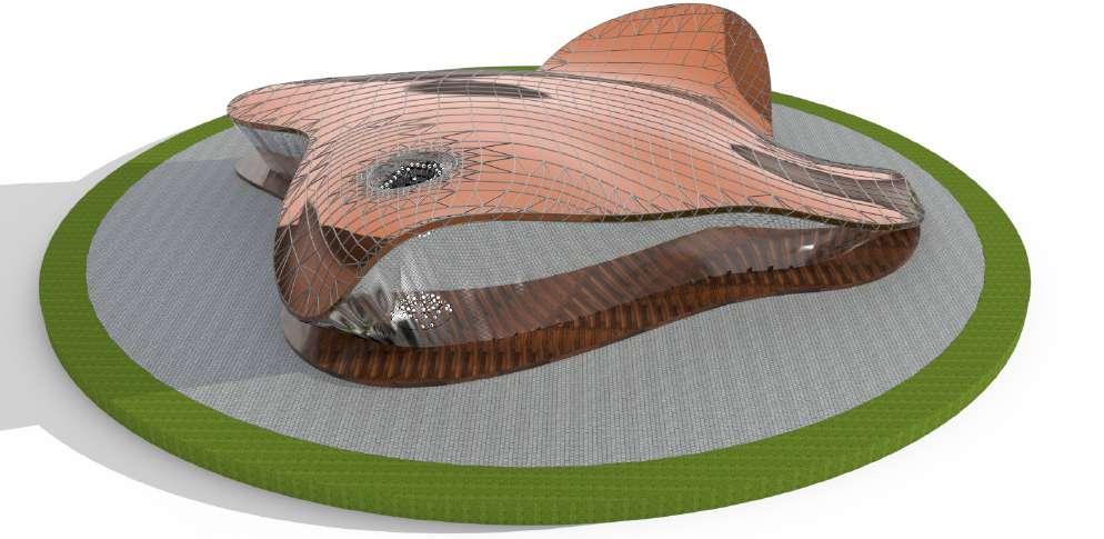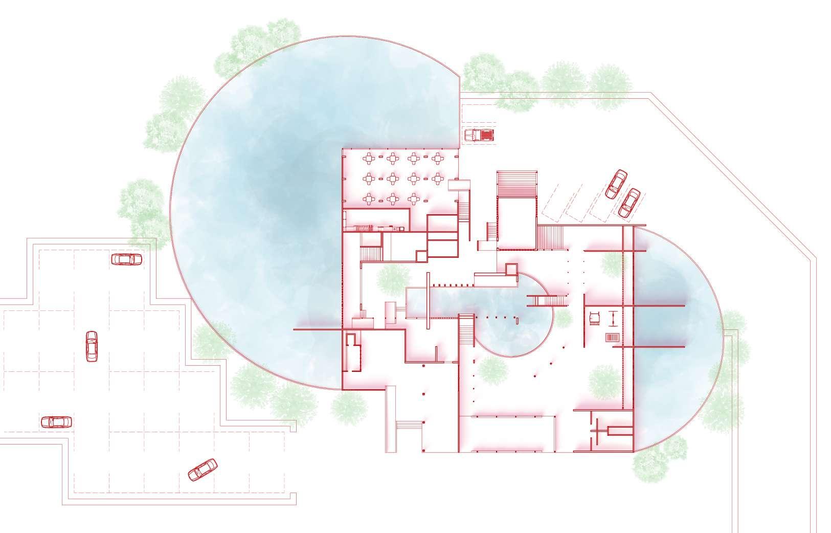 The art center comprises of the exhibition part which is the first part and later that of a public park, the design may look very randomly oriented but follows a path which will guide the people around the center. There are visual connections from one zone to the next of the journey to create a sense of curiosity for the people about what lies ahead. Water and green spaces are designed as a experiential element, i.e. they have been used to keep the user connected to nature. There is constant movement from open to semi open to closed spaces and vice versa.