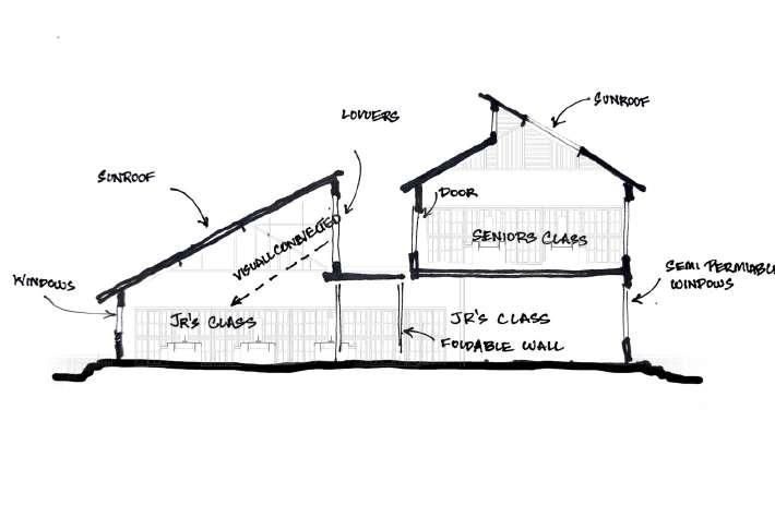 The Classrooms have been designed to have maximum interactions with the hopes that students will learn from one another during these interactions. The classes are separated based on subjects and classes take place simultaneously, hence the school remains active all the time. Two different classes will take place at the same time in the same building to promote learning from one another.